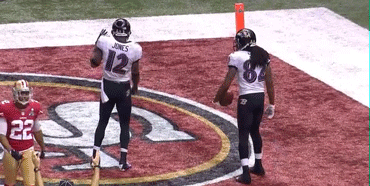 The great showboaters of football, Deion Sanders, T.O. (and now Jacoby Jones), have all been Black and I must say I’m proud! Although some may call this behavior arrogant, I think if you are a boss and you do incredible feats of athleticism you get to do victory dances. The above gif is of Jacoby Jones, Baltimore Ravens player from New Orleans, at the Super Bowl this past Sunday doing a classic New Orleans dance, the Beenie Weenie. Although all these players earned their fame by their incredible skills, I comrade them on their awesome actions of showboating. Plus no one is gonna question a Black man in an end zone doing the dougie, you may not like it, but ain’t nobody gonna step to him.